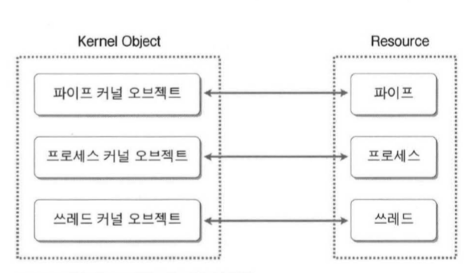 - 프로세스 내부에서 스레드를 생성할 때, IPC(Inter Process Communication)을 위해 사용되는 파이프나 메일슬롯을 생성할 때에도, 커널 오브젝트를 생성해서 필요한 정보들을 채워야 한다.