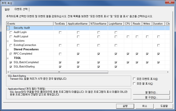 - Profiler를 이용해서 캡쳐하고자 하는 이벤트를 선택
