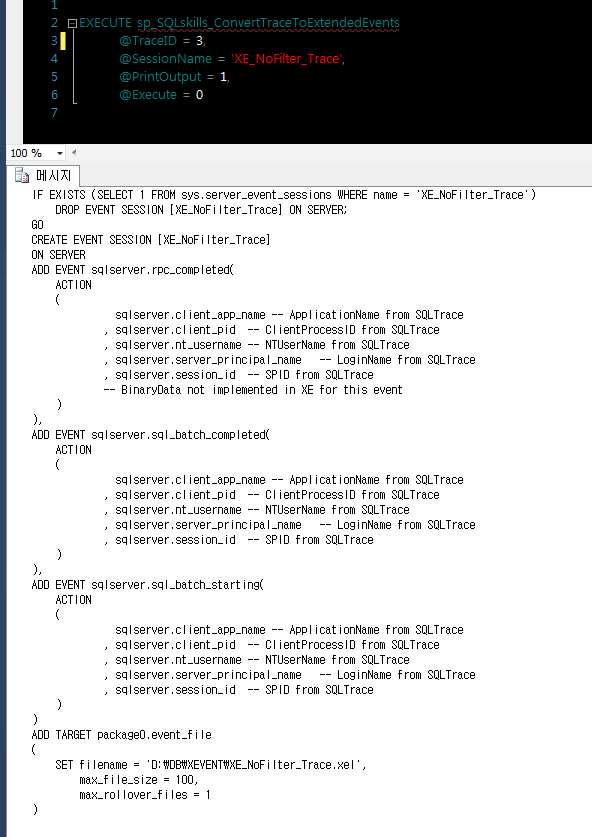 Profiler to XEvents_sp_SQLskills_ConvertTraceToExtendedEvents.sql 파일을 실행 한다.